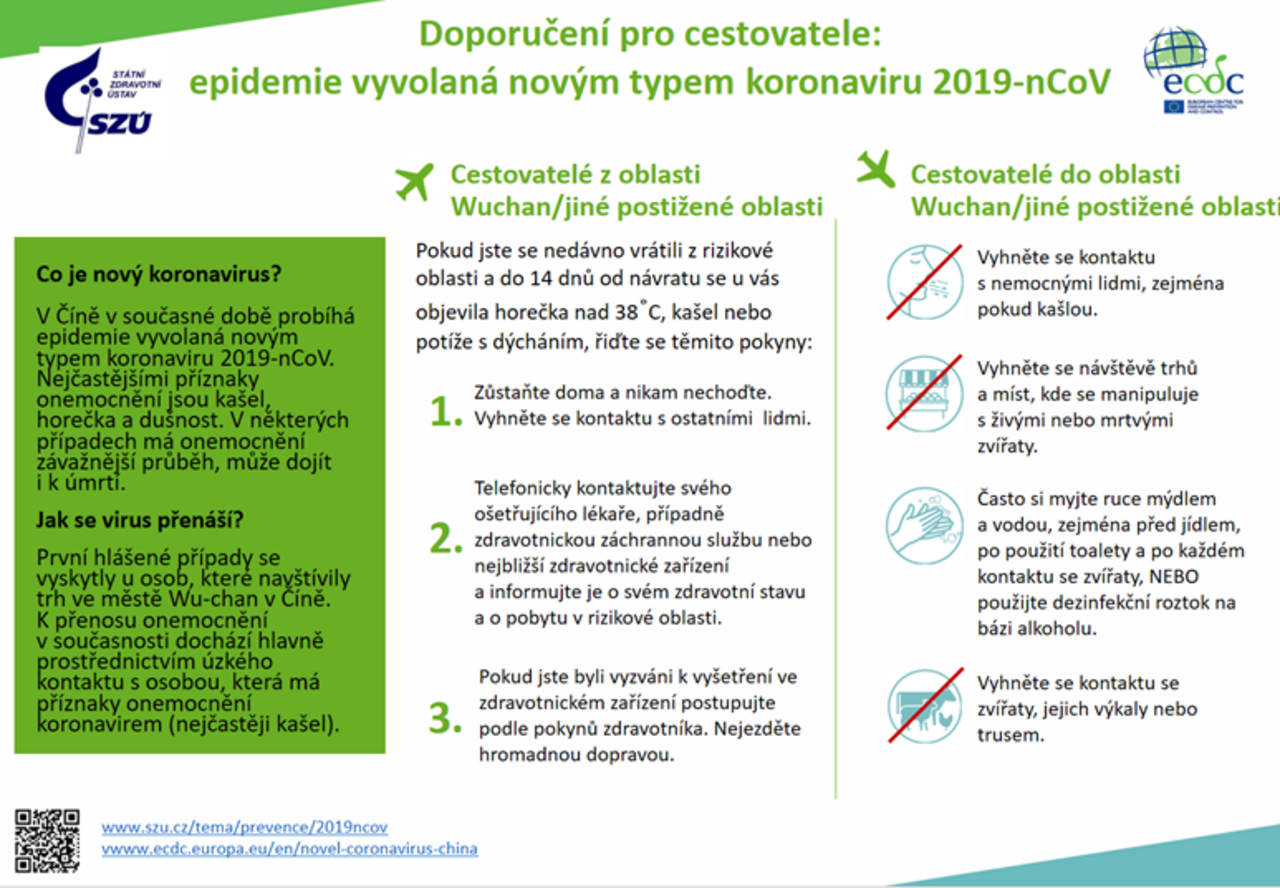 - Co dělat, pokud jste přicestovali v posledních 14 dnech z oblasti nákazy novým koronavirem? Přečtěte si doporučení na webu Státního zdravotnického ústavu.